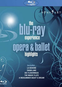 Il y a dans cette promotion exclusive pour le Blu-Ray Le Trouvère de Verdi, Le Lac des cygnes de Tchaikovski, La flute enchantée de Mozart, La Bohème de Puccini, Carmen de Bizet, Le Songe d’une nuit d’été de Mendelssohn, Gianni Schicchi de Puccini, La Chauve souris de Johann Strauss, Zoroastre de Rameau, La Cenerentola de Rossini, Norma de Bellini, Diamants de Balanchine… Les vedettes en sont au passage Cecilia Bartoli, Bryn Terfel, Anne Sofie Van otter, Agnès Letestu, et autres Thomas Allen. L’intérêt de cette compilation est de vous en mettre plein les yeux avec le lecteur Blu-Ray qui, comme chacun sait ou presque, fait son apparition dans les rayons de la haute définition. A un prix fort modique, on en a effectivement plein les yeux si l’on veut se faire une petite idée de la qualité.