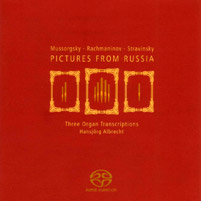 Après une enregistrement consacré à Richard Wagner, remarqué, et par certains aspects remarquable, avec notamment un respect indéniable de la partition originale, dans lequel des extraits de la Tétralogie étaient transcrites pour orgue, Hansjörg Albrecht s’attaque ici à trois grandes figures de la musique russe, Moussorgski avec ses fameux « Tableaux d’une exposition », Sergei Rachmaninov et « L’Ile des Morts » dans la transcription pour orgue d’Axel Langmann et trois danses du ballet « Petrouchka » d’Igor Strawinsky. Le jeune organiste semble toujours aussi pertinent dans son approche des œuvres abordées et parvient, une nouvelle fois à convaincre par un jeu ciselé, sans surcharge ni virtuosité déplacées. Tout cela sonne avec brio et la prise de son particulière conçue par Martin Fischer est un des atouts majeurs de cette série de disques pour laquelle le multicanal, offert par le support SACD, est idéal. Il n’en demeure pas moins que cela participe du domaine de l’anecdotique, voire du ludique. Mais le plaisir est au rendez-vous et c’est déjà beaucoup. A découvrir…