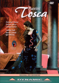 Enregistré au Festival Puccini à Torre Del Lago en août 2007, cette Tosca ne bouleversera pas la discographie et à tout le moins l’interprétation d’un des opéras les plus célèbres et les plus beaux de Puccini, sur un livret de Luigi Illica et Giuseppe Giacosa, d'après la pièce de Victorien Sardou. Il fut créé le 14 janvier 1900 au Teatro Costanzi de Rome. La première représentation fut un échec complet. La critique se montra sans pitié. Mais le public, d'abord réticent, va en faire un grand succès populaire. La Scala reprend l'œuvre dès le 17 mars sous la baguette d'Arturo Toscanini. L’histoire est fort simple : la cantatrice Floria Tosca est la maîtresse du peintre Mario Cavaradossi, qui vient d'aider son ami Cesare à fuir Rome. Le chef de la police, Scarpia, joue sur la jalousie de Tosca pour piéger Cavaradossi. On annonce la victoire de Napoléon à Marengo. Cavaradossi est arrêté et Scarpia exerce un odieux chantage sur Tosca : qu'elle cède et son amant sera sauvé. Tosca accepte et Scarpia donne l'ordre qu'on simule l'exécution de Cavaradossi. Discrètement, il donne un contre ordre, puis signe le sauf-conduit des deux amants. Lorsqu'il s'approche de Tosca , cette dernière le poignarde avec un couteau de table. Elle se précipite au château St Ange, et rassure son amant, l'exécution ne sera qu'un simulacre. Mario est fusillé et c'est un cadavre criblé de balles que Tosca retrouve. La mort de Scarpia est découverte. Tosca enjambe le parapet et se jette dans le vide. Il aurait fallu une interprétation plus emportée ou plus vive que celle-ci pour nous captiver davantage car si les décors ne convainquent guère, les chanteurs et l’orchestre n’emportent pas non plus franchement l’adhésion. On assiste en fait à une interprétation sans grande conviction, honnête et carrée mais sans nous apporter quelque chose de particulier au niveau vocal ou orchestral. C’est le grand problème actuel semble-t-il de ces interprétations relativement satisfaisantes mais qui ne font plus guère vivre les compositions qu’elles prétendent servir et honorer.