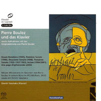 Jean-Jacques Millo In three SACDs, the label Cybèle retraces the pianistic legacy of the Franch composer and conductor Pierre Boulez, born in 1925. Based on the original scores of the works, we can here hear “Douze Notations” from 1945, the three Sonatas dating respectively from 1946, 1948 and 1955-1957/1963, “Incises” from 1994/2001 (expanded version from 2001), as well as “Une Page d’Ephéméride” dating from 2005. As was the case for earlier volumes of this artist-centered collection, dedicated not only to the music by each artist but also to their personality, a long interview with Pierre Boulez done at IRCAM in 2011 offers the possibility of getting to know the subject better. He evokes in German, unfortunately without translation (which takes the cake for a Frenchman), Frank Zappa, John Cage, René Char, Jean-Louis Barrault, Antonin Artaud, and last but not least, Olivier Messiaen. Throughout this demanding pianistic journey, Dimitri Vassilakis defends these works with a rigor bathed in poetry that will leave no one indifferent. With a musical discourse of absolute clarity, lightness of playing that is both luminous and serene marks these pages with a unique respiration. This indispensable release, whose sound quality is exemplary, and is richly illustrated and documented, cannot be ignored.
