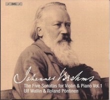 Ce premier volume, de l’intégrale des Sonates pour violon et piano de Johannes Brahms, comprend La Sonate N°1 en sol majeur Op.78, celle-là même qui fit dire au musicologue François-René Tranchefort : « Il s’agit certainement d’un sommet absolu de l’inspiration brahmsienne, en même temps que de toute la musique de chambre romantique », avant d’ajouter « La Production de chambre compte vingt-quatre numéros d’opus au catalogue brahmsien (qui en comprend, au total, cent vingt-deux) : elle occupe donc une place à peu près comparable à celle de la musique pour piano, - revêtant, comme celle-ci, un caractère de confidence, et parfois de confession ; mais manifestant un souci de la forme beaucoup plus exigeant et parfaitement « classique » », puis suit la Sonate Op.120, originellement composée pour clarinette et piano, ainsi que trois compléments ; « Scherzo (Allegro ) » d’après F.A.E Sonate, Wo02, « O kühler Wald » Op.72 N°3 et « An die Nachtigall » Op.46 N°4. Ulf Wallin au violon et Roland Pöntinen donnent, de ces pages, une lecture rigoureuse, sans concession, mais occultant quelque peu la ferveur de ces oeuvres admirables.